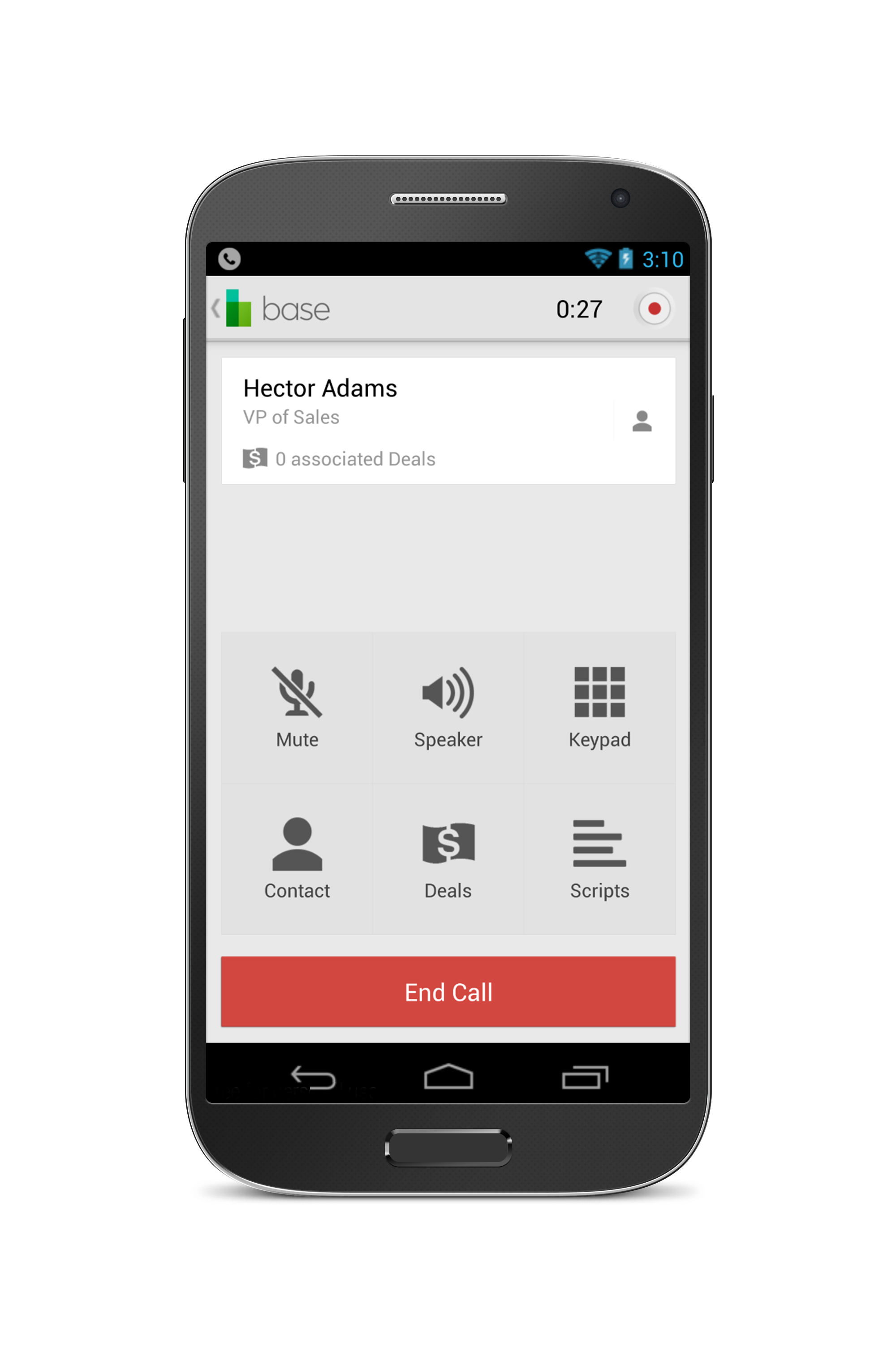 - After a phone call is over, if the contact is not in Base, you can add the number and info directly to Base in a few short steps (you can’t do this on iOS either)